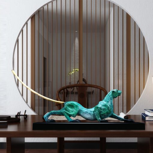 Tượng con báo bằng đồng để bàn làm việc biểu tượng của sự mạnh mẽ, kiên nhẫn và uyển chuyển