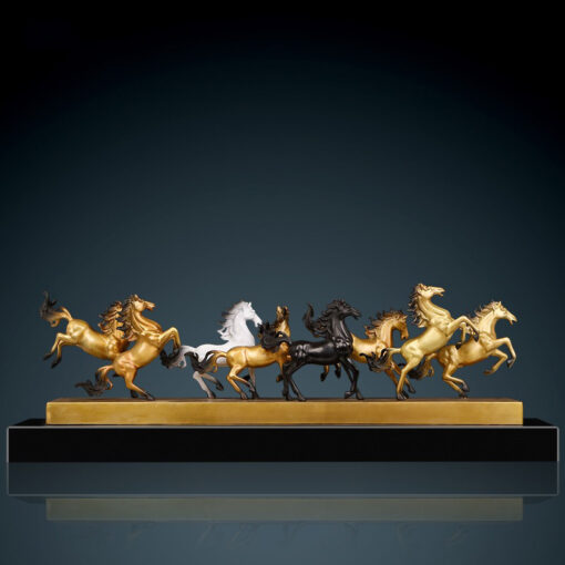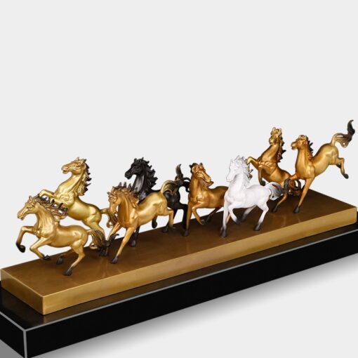 Tượng “Bát Mã Truy Phong Vàng” là biểu tượng mạnh mẽ của sự phấn đấu và thành công không ngừng nghỉ. Với hình ảnh tám chú ngựa vàng phi nước đại, tượng mang ý nghĩa thuận lợi, sức mạnh và vận may trong công việc cũng như cuộc sống. Từng chú ngựa được chế tác tỉ mỉ, thể hiện sự năng động và tinh thần chiến đấu kiên cường. Sản phẩm không chỉ là món quà sang trọng, đẳng cấp mà còn là vật phẩm phong thủy giúp kích thích tài lộc, thăng tiến sự nghiệp và mang đến năng lượng tích cực cho gia chủ.