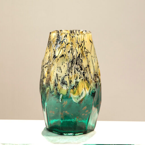 Bộ bình cắm hoa với thiết kế tinh tế và hiện đại, nổi bật với sự kết hợp màu sắc độc đáo giữa xanh ngọc và vân đá vàng tạo nên vẻ đẹp sang trọng, gần gũi với thiên nhiên. Các bình có kiểu dáng đa dạng, từ nhỏ xinh đến lớn đầy đặn, phù hợp để cắm cành hoa dài, hoa tươi hoặc hoa khô trang trí cho mọi không gian sống. Chất liệu thủy tinh cao cấp, trong suốt và bóng bẩy giúp làm nổi bật sắc hoa và tăng vẻ tinh tế cho bàn trà, kệ tủ hay phòng khách. Đây là lựa chọn hoàn hảo để mang lại sức sống và điểm nhấn nghệ thuật cho ngôi nhà bạn.