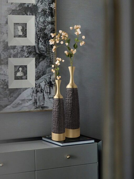 - Chất liệu cao cấp: Sử dụng hợp kim và nhôm chất lượng cao, bình hoa có độ bền vượt trội và khả năng chống ăn mòn, giúp sản phẩm luôn giữ được vẻ đẹp ban đầu sau thời gian dài sử dụng.