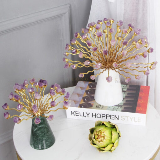 Nguồn năng lượng từ đá thạch anh tím giúp giảm căng thẳng, cân bằng cảm xúc và cải thiện sức khỏe tinh thần. Đặt bình hoa trong phòng ngủ hoặc phòng thiền là một cách tuyệt vời để tận hưởng lợi ích này.
