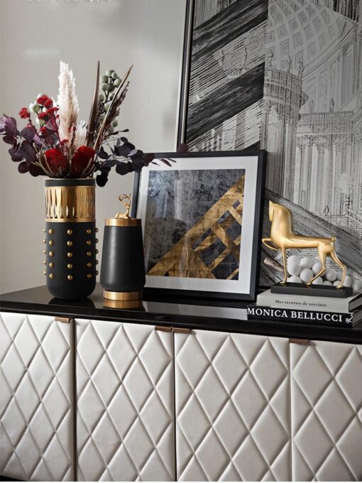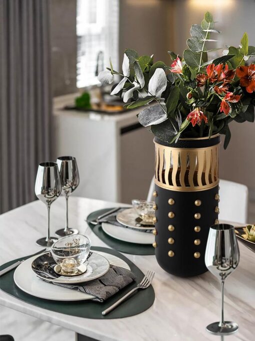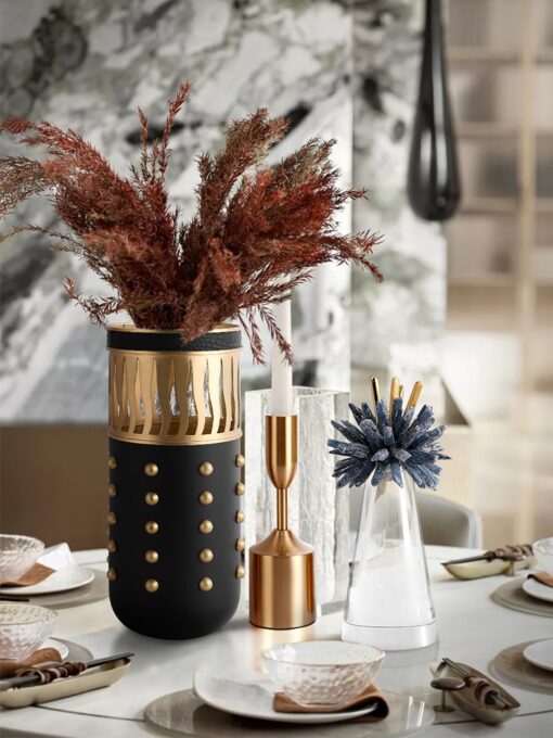 - Chất liệu cao cấp: Sự kết hợp hoàn hảo giữa kim loại và da không chỉ làm tăng độ bền của sản phẩm mà còn đảm bảo tính thẩm mỹ cao, khiến bình hoa trở thành món đồ decor không thể thiếu cho không gian sống sang trọng.