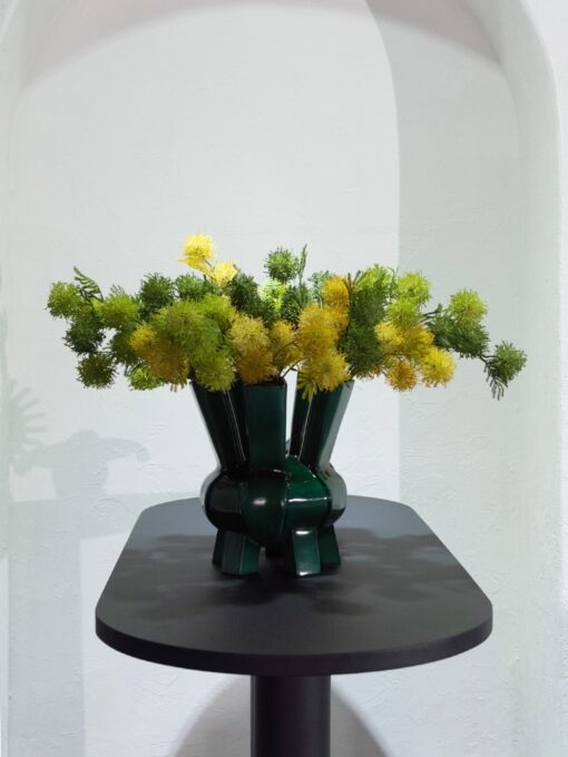 Chiếc bình hoa với thiết kế độc đáo và hiện đại, tạo điểm nhấn bắt mắt cho không gian sống của bạn. Màu xanh đậm sang trọng kết hợp kiểu dáng lạ mắt, vừa mang tính thẩm mỹ cao vừa có thể phối hợp hài hòa với nhiều phong cách nội thất khác nhau. Đây là món đồ decor lý tưởng cho bàn trà, kệ tủ hay phòng khách, giúp không gian thêm phần sinh động và tràn đầy sức sống. Bình hoa còn có thể dùng để cắm hoa tươi hoặc hoa khô tùy thích, tạo nên nét đẹp tinh tế, sáng tạo cho tổ ấm của bạn.