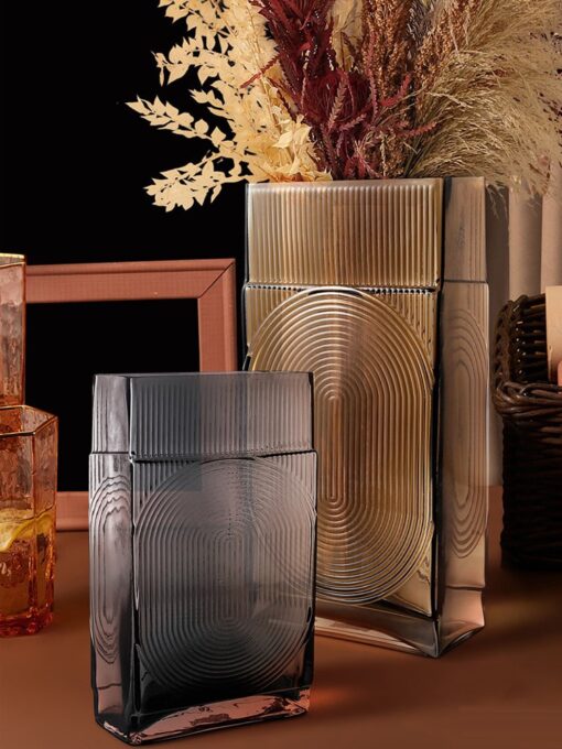 Phong cách thiết kế của bình hoa này hướng đến sự tối giản nhưng vẫn đảm bảo tính thẩm mỹ cao. Đặc biệt, với chất liệu thủy tinh trong suốt, bình hoa này còn mang lại cảm giác không gian mở, rộng rãi và thoáng đãng, phù hợp với những căn phòng theo phong cách hiện đại.