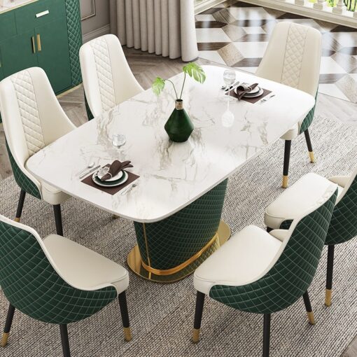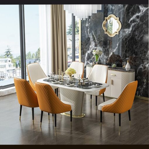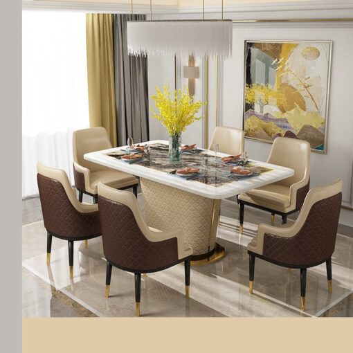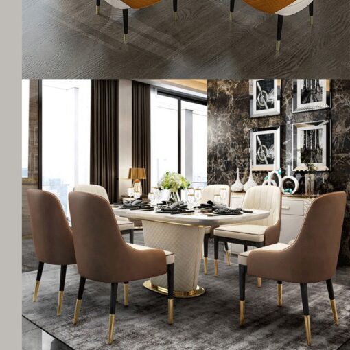 Mẫu bàn ăn trang trí bọc da kết hợp mặt đá cẩm thạch dễ dàng vệ sinh, lau chùi
