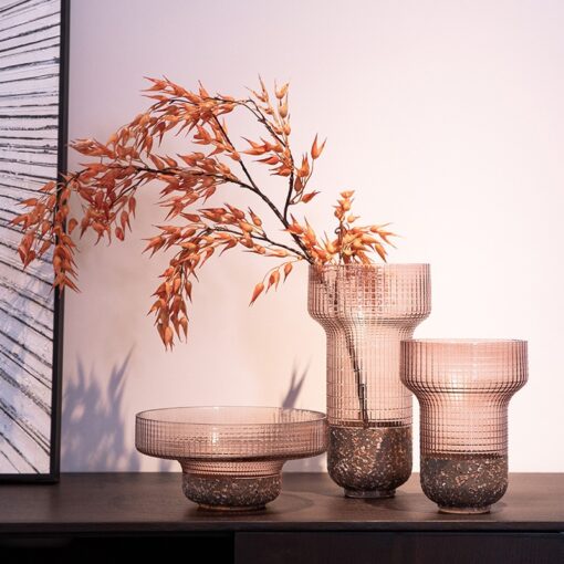 Bộ bình cắm hoa cổ rộng màu hồng