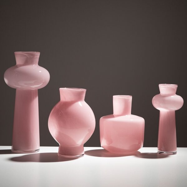 Bộ bình cắm hoa với thiết kế tinh tế và hiện đại, mang đến vẻ đẹp ngọt ngào và nhẹ nhàng cho không gian sống. Mỗi chiếc bình có hình dáng độc đáo, đa dạng về kích thước và tạo nên tổng thể hài hòa khi kết hợp cùng nhau. Chất liệu thủy tinh mờ màu hồng pastel giúp làm nổi bật những bông hoa tươi hay hoa khô cắm bên trong. Đây là lựa chọn hoàn hảo để trang trí phòng khách, bàn ăn hoặc góc làm việc, tạo nên điểm nhấn duyên dáng và tinh tế cho không gian của bạn.