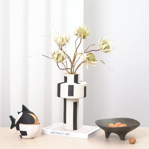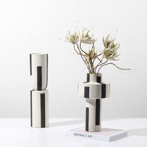Bộ lọ cắm hoa phong cách đơn giản là lựa chọn tuyệt vời để làm mới không gian sống với thiết kế tinh tế và hiện đại. Với kiểu dáng thanh lịch, phối màu trắng đen chủ đạo, bộ lọ dễ dàng hòa hợp với nhiều phong cách trang trí khác nhau từ tối giản đến Scandinavian. Chất liệu gốm cao cấp tạo nên sự chắc chắn và độ bền lâu dài, đồng thời mang đến vẻ đẹp mộc mạc nhưng không kém phần sang trọng. Sản phẩm không chỉ là vật dụng trang trí mà còn giúp tôn lên vẻ đẹp tự nhiên của hoa, mang lại sự hài hòa và thanh thoát cho căn phòng.