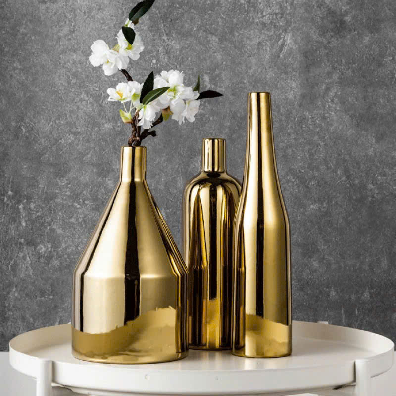 Bộ Lọ Hoa Gốm Mạ Vàng Kiểu Dáng Hiện Đại