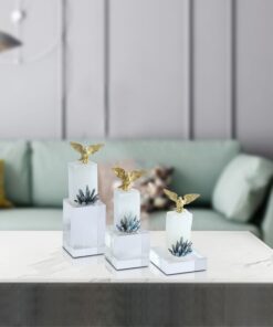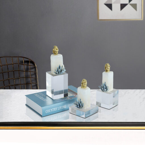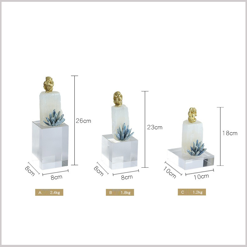 Bộ sưu tập này phù hợp với cả phong cách cổ điển lẫn hiện đại, mang đến sự linh hoạt trong bài trí. Phần đế pha lê vuông vắn tạo sự vững chãi, trong khi các linh vật vàng nổi bật trên nền trắng trong suốt giúp không gian trở nên sáng sủa và tinh tế hơn.