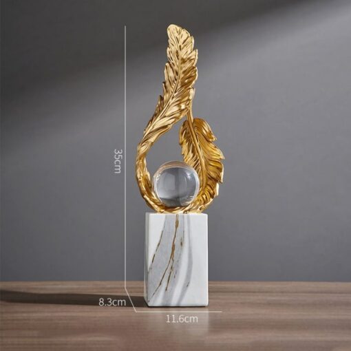 Với kích thước D11.6cm x R8.3cm x C35cm, chất liệu pha lê nhân tạo, đá cẩm thạch và kim loại mạ vàng, cánh lông vũ thể hiện sự tinh tế, mềm mại và quý phái. Sản phẩm phù hợp để làm quà tặng tân gia hoặc trang trí phòng khách, góp phần làm tăng giá trị thẩm mỹ cho không gian sống.