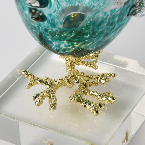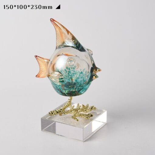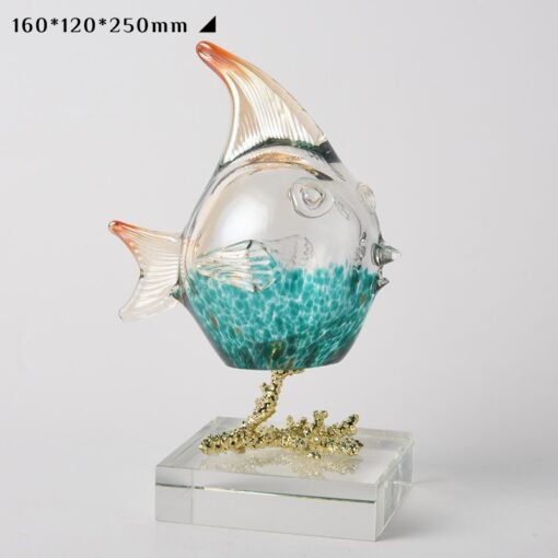 Điểm nhấn nổi bật của sản phẩm là phần thân cá được làm từ pha lê trong suốt, kết hợp sắc xanh của biển cả. Phần đế được làm từ chất liệu acrylic trong suốt hoặc vàng đồng sáng bóng, vừa chắc chắn vừa mang lại cảm giác sang trọng. Sự kết hợp này không chỉ làm tăng tính thẩm mỹ mà còn giúp sản phẩm phù hợp với nhiều phong cách nội thất, từ hiện đại, tối giản đến cổ điển.