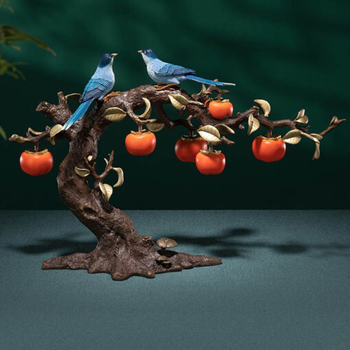 Tượng được đúc từ đồng nguyên chất cao cấp, đảm bảo độ bền bỉ và khả năng giữ năng lượng phong thủy tích cực lâu dài. Chất liệu đồng giúp tạo nên vẻ đẹp sang trọng, sắc nét từng chi tiết như lông chim, cánh và quả hồng, mang lại giá trị nghệ thuật và phong thủy cao.