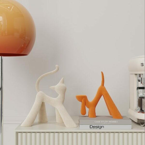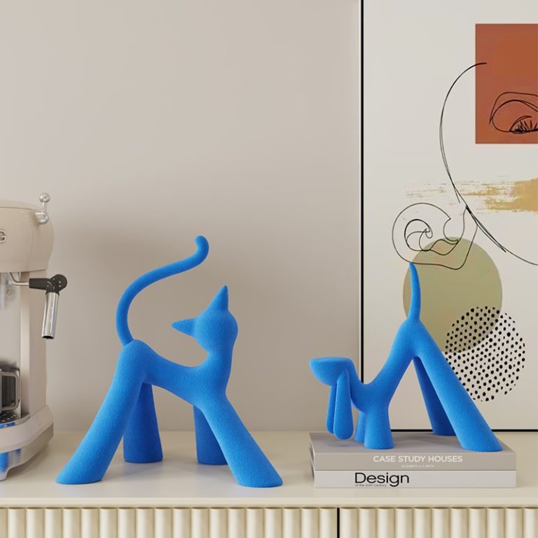 Đặt cặp mèo trên kệ trang trí, bàn trà hoặc tủ đựng đồ giúp tạo điểm nhấn ấm áp, gần gũi và thu hút sự chú ý của khách đến thăm.