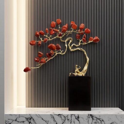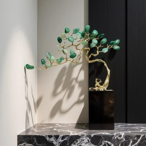 Vật liệu: đồng, đá màu ngọc bích, thạch anh hồng