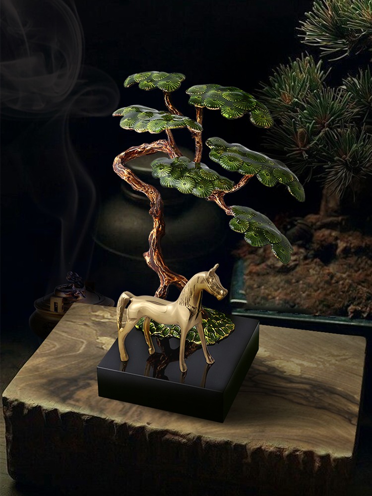 Tượng Cây Tùng Đồng Nghệ Thuật là biểu tượng hoàn hảo của sự trường thọ và phú quý. Với thiết kế tinh xảo, sắc nét, cây tùng được tạo hình sống động từ chất liệu đồng cao cấp, kết hợp cùng chú ngựa nhỏ bên dưới tạo nên một tác phẩm nghệ thuật đầy ý nghĩa. Sản phẩm không chỉ mang lại vẻ đẹp sang trọng cho không gian sống, mà còn thể hiện sự bền vững, sức khỏe và sự may mắn trong phong thủy. Đây là món đồ trang trí lý tưởng cho bàn làm việc, phòng khách hoặc không gian trang trọng.