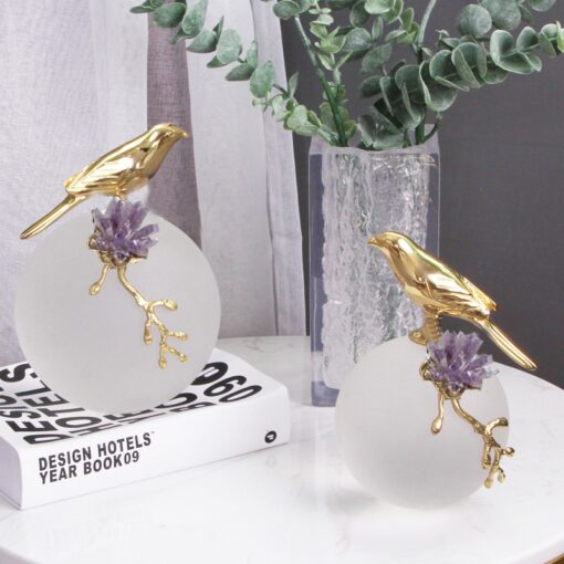 Chim Hót Trên Quả Cầu Đá Tinh Khiết decor kệ tủ phòng khách
