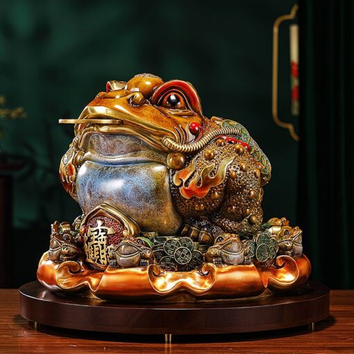 Trong phong thủy, Cóc Thiềm Thừ từ lâu đã được coi là biểu tượng của tài lộc, thịnh vượng và sự bình an. Thiềm Thừ, hay còn gọi là “cóc ba chân”, gắn liền với truyền thuyết cổ xưa về loài cóc thần mang lại của cải cho nhân gian. Với hình ảnh ngậm đồng tiền vàng trong miệng, Thiềm Thừ tượng trưng cho việc thu hút tài lộc và giữ gìn của cải, một yếu tố quan trọng đối với các gia đình kinh doanh hoặc những người muốn cầu tài lộc. Đặc biệt, Cóc Thiềm Thừ Ngọc Đồng Đa Sắc được chế tác từ chất liệu đồng cao cấp kết hợp màu sắc ngọc đa dạng, không chỉ là món đồ phong thủy mà còn là tác phẩm nghệ thuật tinh xảo.