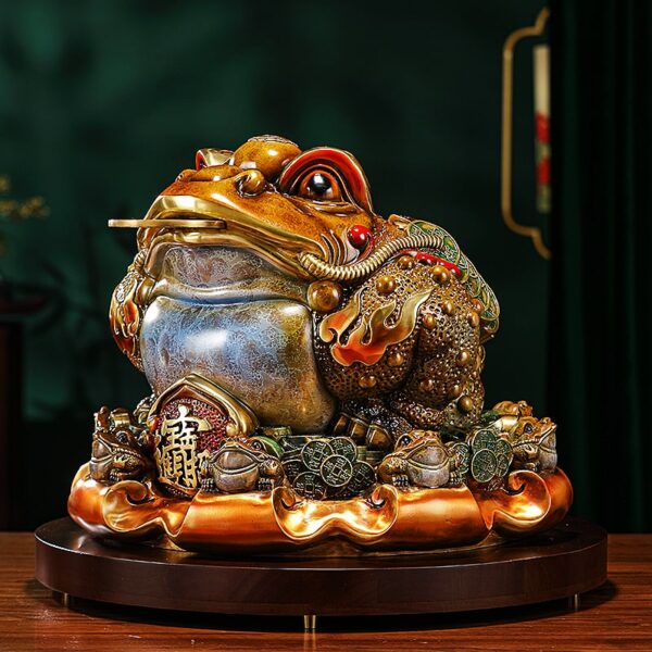 Ngoài ý nghĩa thu hút tài lộc, Thiềm Thừ còn được coi là biểu tượng bảo vệ, giúp gia chủ tránh được các nguy cơ mất mát tài sản. Đặc biệt, các chi tiết như mắt đỏ ruby và vảy vàng trên thân tượng được cho là có khả năng hóa giải tà khí.