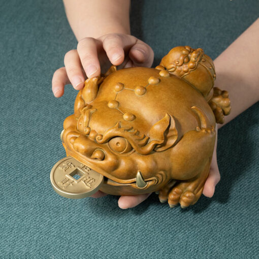 Hình ảnh cóc ba chân ngậm đồng xu vàng là biểu tượng của sự phú quý, giúp kích hoạt dòng chảy tài lộc và bảo vệ vận khí. Đây là linh vật phù hợp để đặt tại các vị trí như bàn thờ thần tài, bàn làm việc hay phòng khách, mang lại năng lượng tích cực và cơ hội phát triển cho gia chủ.