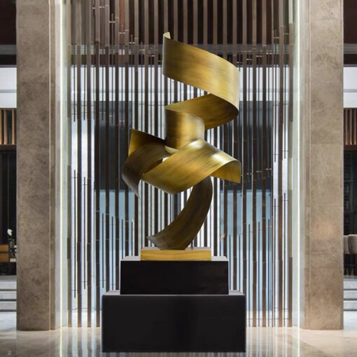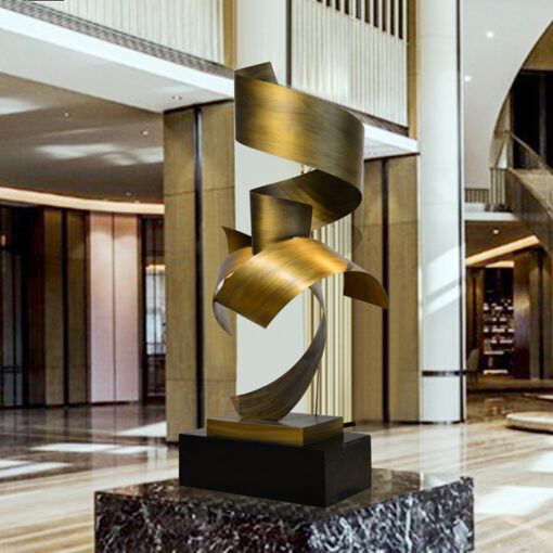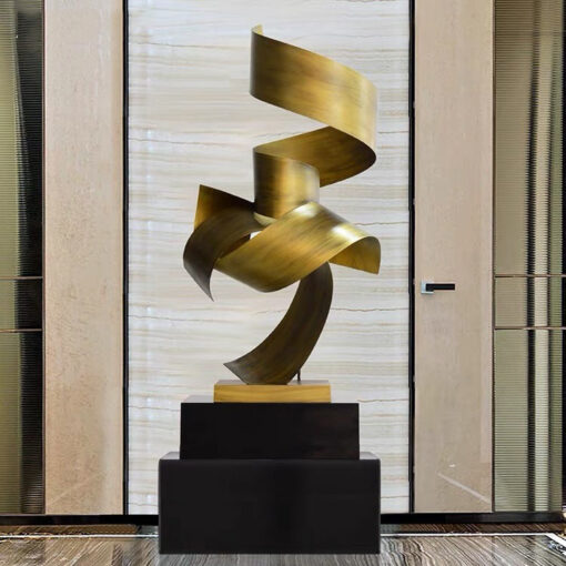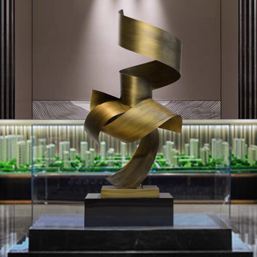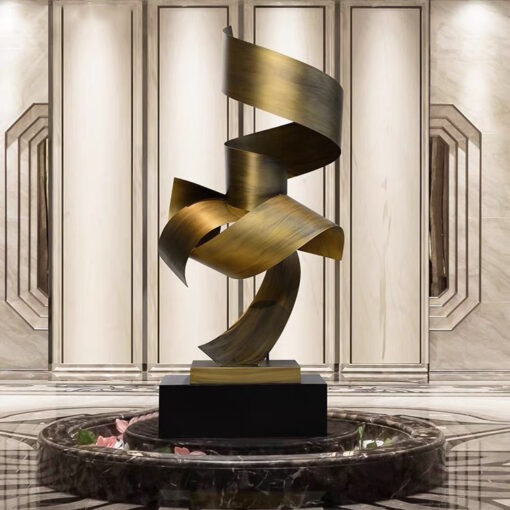 “Tượng Trang Trí Dải Lụa Thời Gian” với thiết kế uốn lượn mềm mại như dải lụa bay, chất liệu kim loại ánh vàng sang trọng. Tượng biểu trưng cho dòng chảy thời gian, mang đến vẻ đẹp tinh tế và hiện đại, là điểm nhấn hoàn hảo cho không gian sống và làm việc.