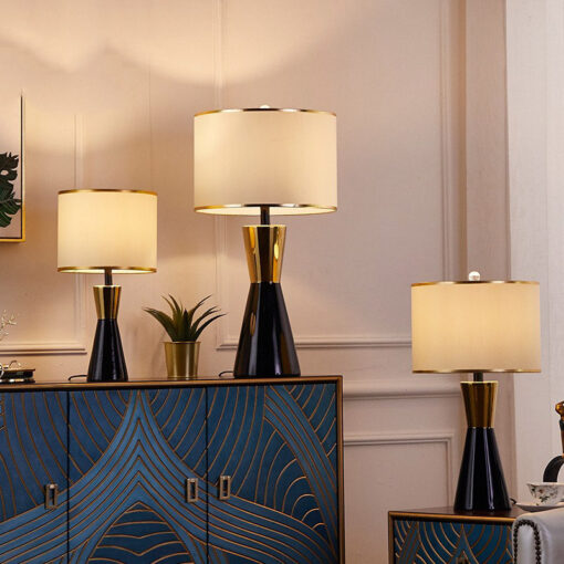 Mẫu đèn ngủ sang trọng này nổi bật với thiết kế hiện đại, kết hợp giữa đen bóng và vàng ánh kim tạo nên vẻ đẹp tinh tế, đẳng cấp cho không gian phòng ngủ. Thân đèn bằng chất liệu gốm sứ cao cấp, đảm bảo độ bền và tính thẩm mỹ lâu dài. Chụp đèn với hai tông màu đen và trắng dễ dàng phối hợp với nhiều phong cách nội thất khác nhau. Ánh sáng phát ra nhẹ nhàng, ấm áp, mang đến cảm giác thư giãn, dễ chịu cho người sử dụng. Đây chắc chắn là lựa chọn hoàn hảo để làm điểm nhấn trang trí và tạo không gian nghỉ ngơi lý tưởng.