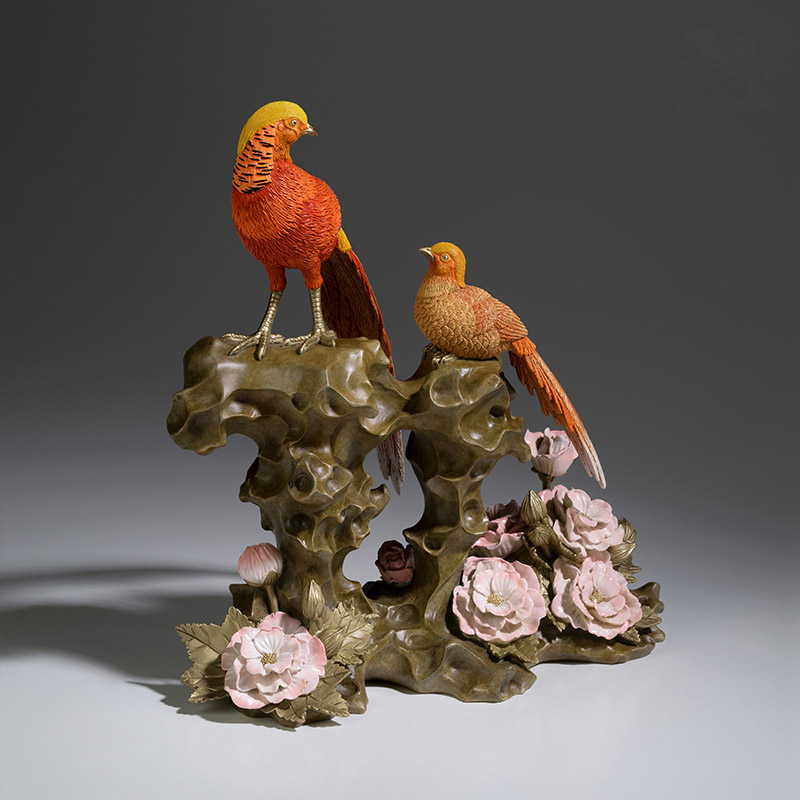 Tượng “Đôi Chim Trĩ Uyên Ương” là biểu tượng tuyệt đẹp của sự hòa hợp và tình yêu bền vững. Với thiết kế tinh xảo, màu sắc sắc nét, tượng tôn lên vẻ đẹp kiêu sa, quý phái của đôi chim trĩ. Bên dưới là những đóa hoa tươi tắn, tạo điểm nhấn sinh động và hài hòa. Đây không chỉ là món đồ trang trí sang trọng cho không gian sống mà còn là biểu tượng may mắn, hạnh phúc và sự thịnh vượng cho gia chủ. Một món quà ý nghĩa cho các cặp đôi và người thân yêu.