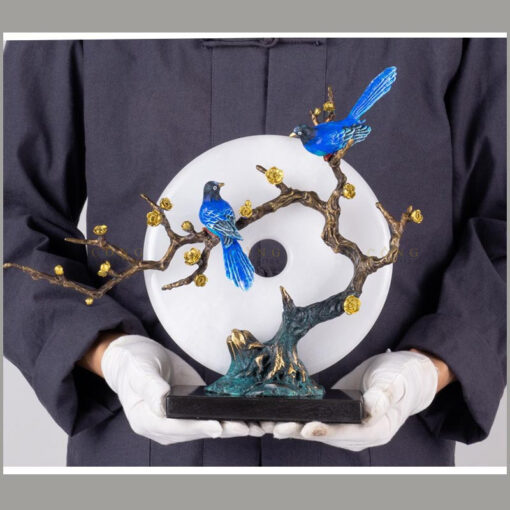 Đá ngọc bích là một trong những loại đá quý có giá trị cao, được xem là biểu tượng của sự may mắn và tài lộc. Trong phong thủy, ngọc bích mang lại sự bình an, sức khỏe và tài lộc dồi dào cho gia chủ. Việc kết hợp ngọc bích với đôi chim uyên ương làm tăng thêm tính biểu tượng cho tình yêu và sự thịnh vượng trong ngôi nhà mới.