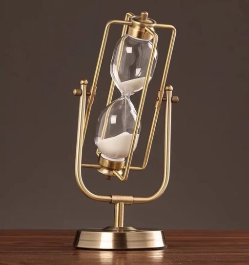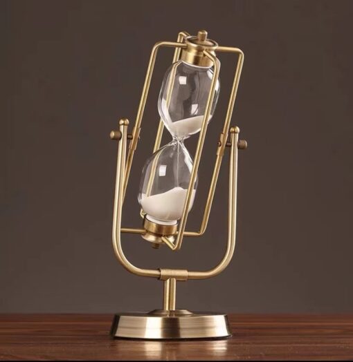 Đồng Hồ Cát Bộ Tứ Sang Trọng là biểu tượng của sự tinh tế và đẳng cấp trong trang trí nội thất. Thiết kế gồm 4 đồng hồ cát thủy tinh được bao bọc bởi khung kim loại màu vàng đồng cổ điển, mang phong cách vintage độc đáo. Sản phẩm không chỉ giúp đo thời gian mà còn là món đồ decor nghệ thuật, tạo điểm nhấn thanh lịch cho bàn làm việc, phòng khách hay không gian sống. Với thiết kế quay xoay linh hoạt, đồng hồ cát này vừa tiện dụng vừa mang ý nghĩa về sự chuyển động liên tục và sự quý giá của thời gian.