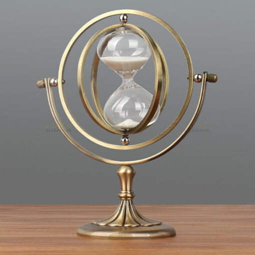 Đồng hồ cát địa cầu chân cao sở hữu thiết kế độc đáo với khung địa cầu xoay tròn xung quanh chiếc đồng hồ cát ở giữa. Sự kết hợp giữa hình dáng đặc biệt của địa cầu và đồng hồ cát không chỉ mang lại vẻ đẹp tinh tế mà còn thể hiện sự quý phái, sang trọng. Đây là một lựa chọn lý tưởng cho những không gian muốn thể hiện phong cách cổ điển nhưng không kém phần hiện đại.