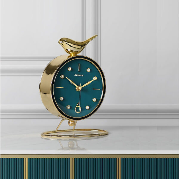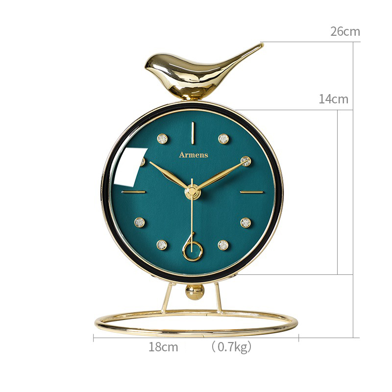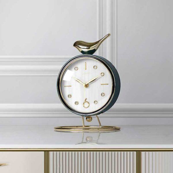 Đồng Hồ Chú Chim Hạnh Phúc là món đồ decor để bàn tuyệt đẹp, kết hợp giữa thiết kế tinh tế và ý nghĩa biểu tượng may mắn, bình an. Chiếc đồng hồ có hình chú chim nhỏ xinh đậu trên đỉnh, tượng trưng cho niềm vui và sự tự do trong cuộc sống. Mặt đồng hồ sắc nét, dễ nhìn cùng các chi tiết kim loại mạ vàng sang trọng, tạo điểm nhấn tinh tế cho không gian làm việc hay phòng khách. Đây là lựa chọn hoàn hảo để trang trí và mang lại cảm giác thư thái, năng lượng tích cực mỗi ngày.