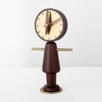 Đồng hồ decor bàn độc đáo này nổi bật với thiết kế sáng tạo và đầy tính nghệ thuật. Với phần thân làm từ gỗ màu nâu ấm áp kết hợp cùng kim loại ánh vàng, sản phẩm tạo nên sự hài hòa về màu sắc và chất liệu. Mặt đồng hồ tròn với số La Mã cổ điển được đặt trên thân tượng hình người, mang lại vẻ vui nhộn và sinh động cho không gian. Đây không chỉ là chiếc đồng hồ xem giờ tiện dụng mà còn là món đồ trang trí thú vị, làm điểm nhấn nổi bật cho bàn làm việc, phòng khách hay không gian sáng tạo.