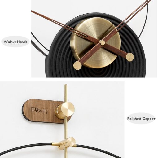 Mặt đồng hồ phối hợp màu sắc tinh tế, kết hợp giữa gam màu đen, xám và nâu của gỗ. Điều này giúp sản phẩm phù hợp với các tông tường sáng màu như trắng, kem, hoặc thậm chí nổi bật trên nền tường tối màu.