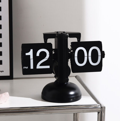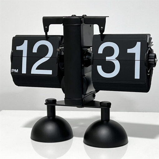 Đồng hồ lật cổ điển được thiết kế với chân đế vững chắc, thân kim loại bóng bẩy và mặt số lớn, rõ ràng. Sự kết hợp giữa màu sắc trung tính như đen, trắng và ánh kim tạo nên vẻ đẹp sang trọng nhưng không kém phần hiện đại. Đây là lý do vì sao nó dễ dàng hòa quyện vào mọi không gian nội thất, từ phòng khách, phòng ngủ, đến không gian làm việc.