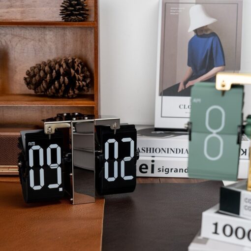 Bạn có thể đặt đồng hồ lật trên kệ sách hoặc kệ tivi để tăng tính thẩm mỹ cho không gian. Khi được kết hợp với sách, bình hoa hoặc các phụ kiện khác, đồng hồ lật sẽ trở thành một phần của bức tranh nghệ thuật tổng thể.