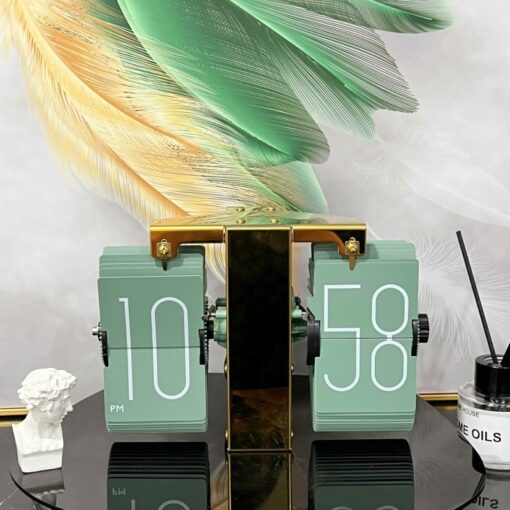 Đồng hồ lật Vintage với tone xanh – vàng thanh lịch