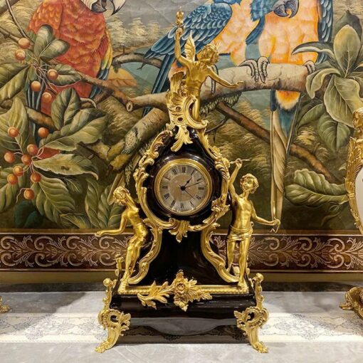 Với phong cách Baroque đặc trưng, đồng hồ được thiết kế với các chi tiết uốn lượn mềm mại, cùng hình ảnh những thiên thần tinh xảo, thể hiện sự cầu kỳ và tinh tế trong từng đường nét. Các thiên thần được chạm khắc tỉ mỉ, với mỗi chi tiết nhỏ đều được làm thủ công một cách cẩn thận, mang đến cảm giác như chúng đang bay lượn trong không gian. Đồng hồ không chỉ mang giá trị sử dụng, mà còn là một tác phẩm nghệ thuật hoàn hảo, khiến mọi người không thể rời mắt mỗi khi nhìn vào.