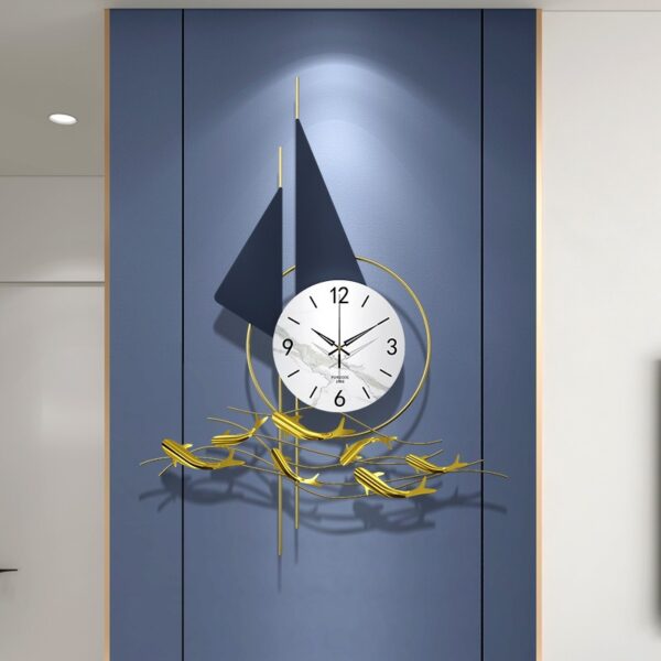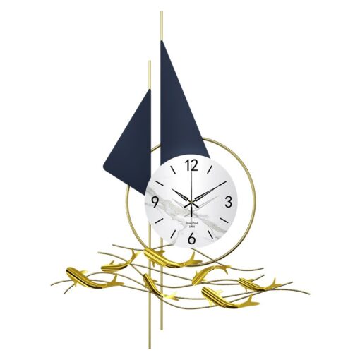 Mẫu đồng hồ thuyền buồm này không chỉ đơn thuần là vật dụng xem giờ mà còn là một tác phẩm nghệ thuật trang trí độc đáo cho không gian sống. Thiết kế kết hợp giữa kim loại vàng sang trọng và mặt đồng hồ vân đá cẩm thạch tạo nên sự hài hòa tinh tế. Hình ảnh thuyền buồm cùng những con cá vàng uốn lượn mang đến cảm giác thanh bình, tự do, rất thích hợp để làm điểm nhấn trong phòng khách hoặc phòng làm việc. Đây là lựa chọn hoàn hảo cho những ai yêu thích phong cách hiện đại, sang trọng và tinh tế.