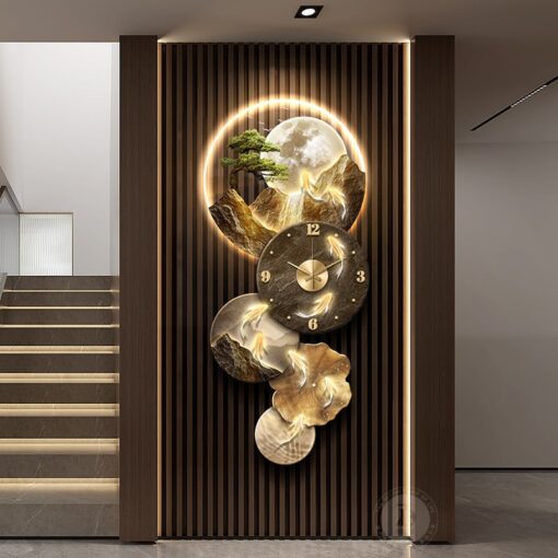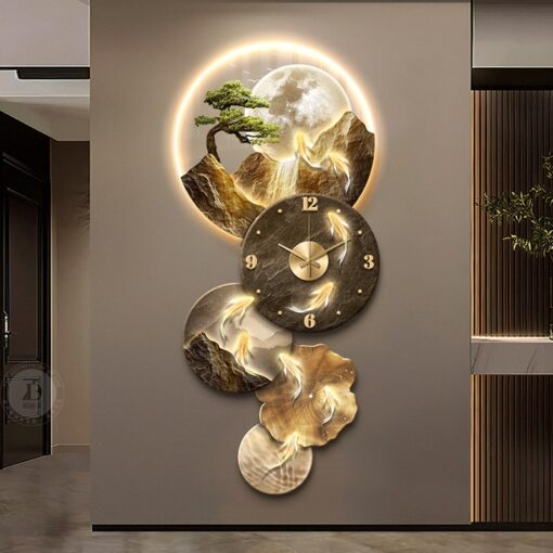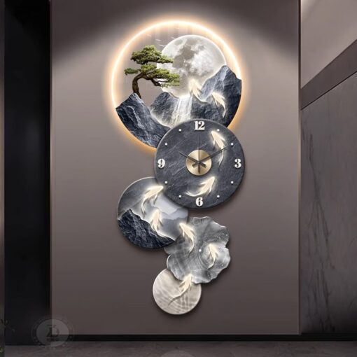 Đồng Hồ Treo Tường Cửu Ngư Liên Hoàn Sơn Thủy Điểm Nhấn Đẳng Cấp Cho Không Gian Nội Thất