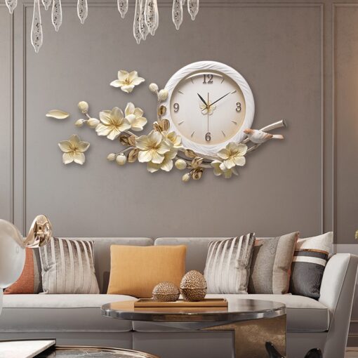 Đồng hồ treo tường hoa mai trang trí phòng khách sang trọng