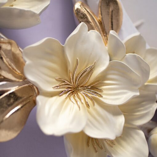 Sự kết hợp giữa hoa mai và chim sẻ tạo nên một tổng thể hài hòa, giúp thu hút tài lộc và mang lại cảm giác an yên cho gia đình. Đồng thời, màu sắc vàng kim và trắng trang nhã còn đại diện cho sự thịnh vượng và thanh khiết.