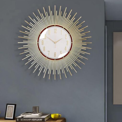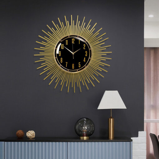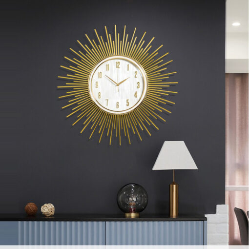 Đồng hồ treo tường mặt trời được thiết kế với các tia sáng lan tỏa từ trung tâm – mô phỏng hình ảnh rực rỡ của mặt trời. Đây là biểu tượng của sự sống, năng lượng tích cực và sự khởi đầu mới. Các đường nét tinh tế và cân đối tạo nên vẻ đẹp hài hòa, phù hợp với nhiều phong cách nội thất khác nhau.
