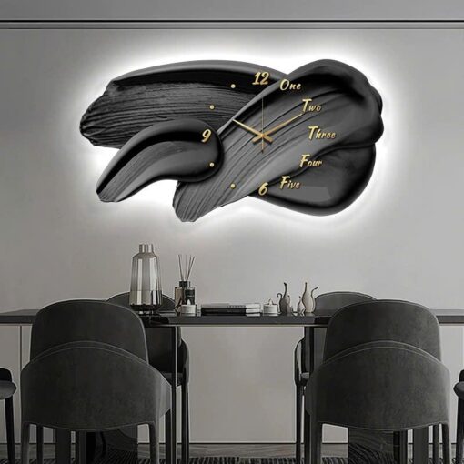 Đồng Hồ Treo Tường Nghệ Thuật Bút Họa Trừu Tượng được lấy cảm hứng từ nét vẽ phóng khoáng của nghệ thuật hội họa trừu tượng. Chiếc đồng hồ mang dáng vẻ mềm mại, với các đường cong uốn lượn độc đáo tạo nên hình ảnh như nét cọ của một họa sĩ trên bức tranh hiện đại. Điểm nhấn là gam màu đen mạnh mẽ, kết hợp với các con số và chữ được thiết kế cách điệu, mang lại sự sang trọng và phá cách.