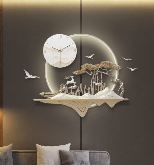 Phòng khách là nơi tiếp đón khách và thể hiện phong cách sống của gia chủ. Treo đồng hồ treo tường nghệ thuật sơn thủy hươu nai tại phòng khách giúp không gian thêm phần sang trọng và cuốn hút. Sản phẩm không chỉ tạo điểm nhấn mà còn mang lại cảm giác ấm cúng và gần gũi.