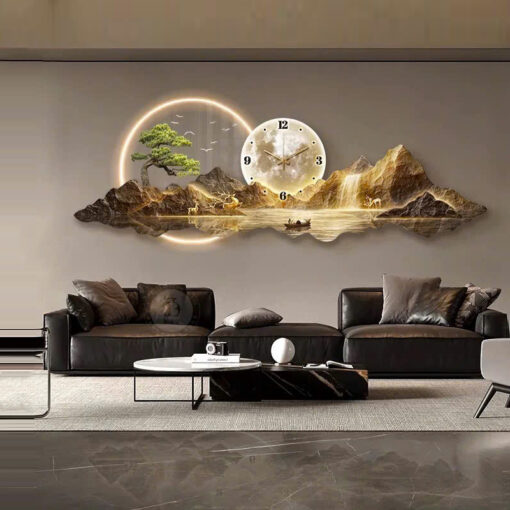 Đồng Hồ Treo Tường Sơn Thủy Hữu Tình phòng khách hiện đại