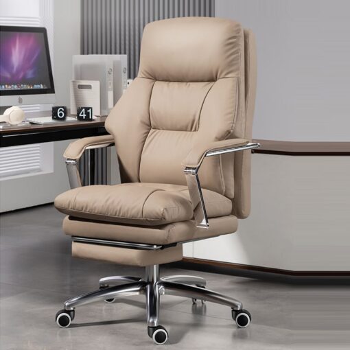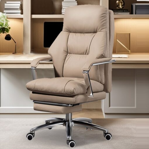 Ghế Xoay Văn Phòng Thông Minh nổi bật với thiết kế hiện đại, tiện nghi, mang lại sự thoải mái tối ưu cho người dùng. Lớp da bọc mềm mại màu kem nhạt kết hợp cùng khung chân inox chắc chắn, linh hoạt xoay đa chiều giúp dễ dàng di chuyển trong không gian làm việc. Đệm ngồi và tựa lưng dày dặn hỗ trợ nâng đỡ cơ thể, giảm căng thẳng khi ngồi lâu. Tính năng thông minh có thể điều chỉnh độ ngả và chân đỡ giúp thư giãn tuyệt đối. Đây là lựa chọn hoàn hảo cho môi trường văn phòng chuyên nghiệp và sang trọng.