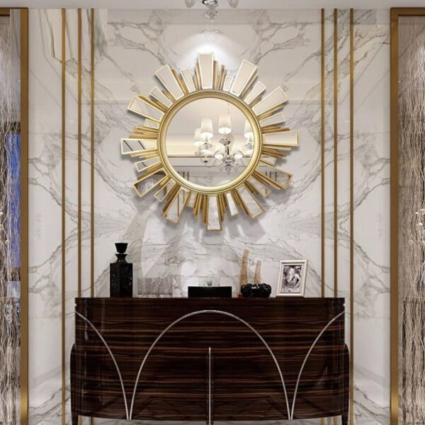 Lối vào nhà thường là nơi tạo ấn tượng đầu tiên cho khách. Một chiếc gương decor độc đáo như Vầng Sáng Hoàng Kim sẽ biến không gian này trở nên tinh tế và thu hút hơn. Đồng thời, gương còn giúp gia tăng ánh sáng tự nhiên, tạo cảm giác thân thiện và chào đón.