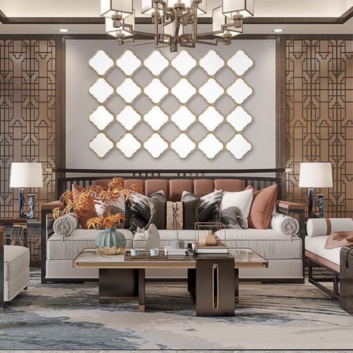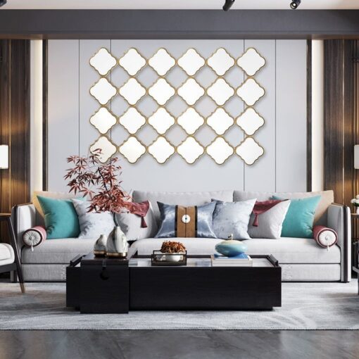 Phòng khách là nơi thể hiện rõ nhất gu thẩm mỹ của gia chủ. Khi treo Gương Treo Tường Nghệ Thuật Cỏ Bốn Lá, không gian sẽ trở nên cuốn hút hơn nhờ hiệu ứng ánh sáng và sự độc đáo trong thiết kế.