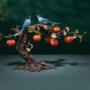 Tượng được thiết kế tinh tế, phù hợp với nhiều không gian khác nhau, từ bàn làm việc đến phòng khách. Sự kết hợp giữa đồng nguyên chất và màu sắc hài hòa của quả hồng làm nổi bật tính thẩm mỹ và giá trị nghệ thuật của sản phẩm.