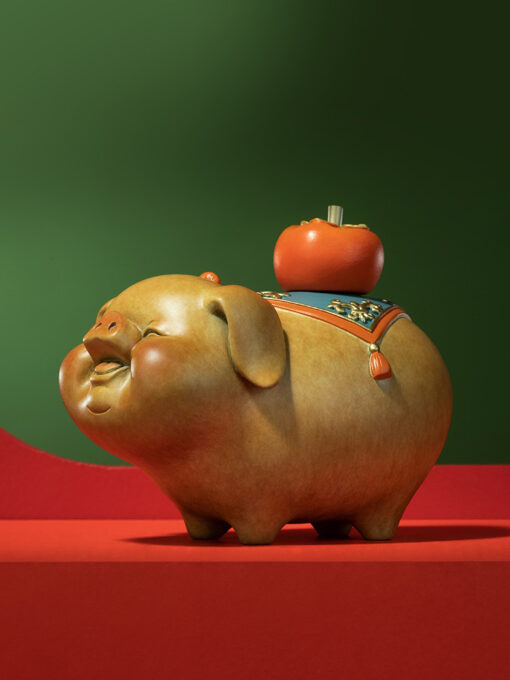 Bài viết: Heo Vàng May Mắn Cõng Quả Hồng Phúc – Biểu Tượng Của Sung Túc Và Thịnh Vượng